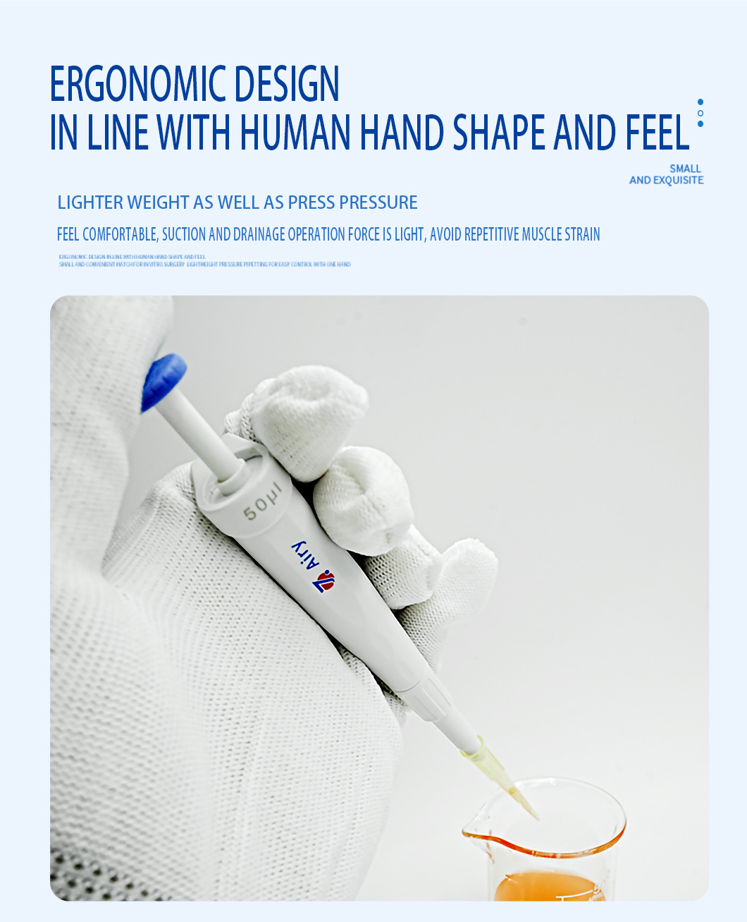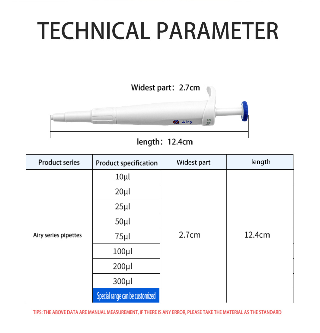 The Mini Pipette Airy series is an ergonomic product specifically designed for scenarios requiring stable pipetting operations — it applies to experiments, animal husbandry, the food industry, and other related fields.