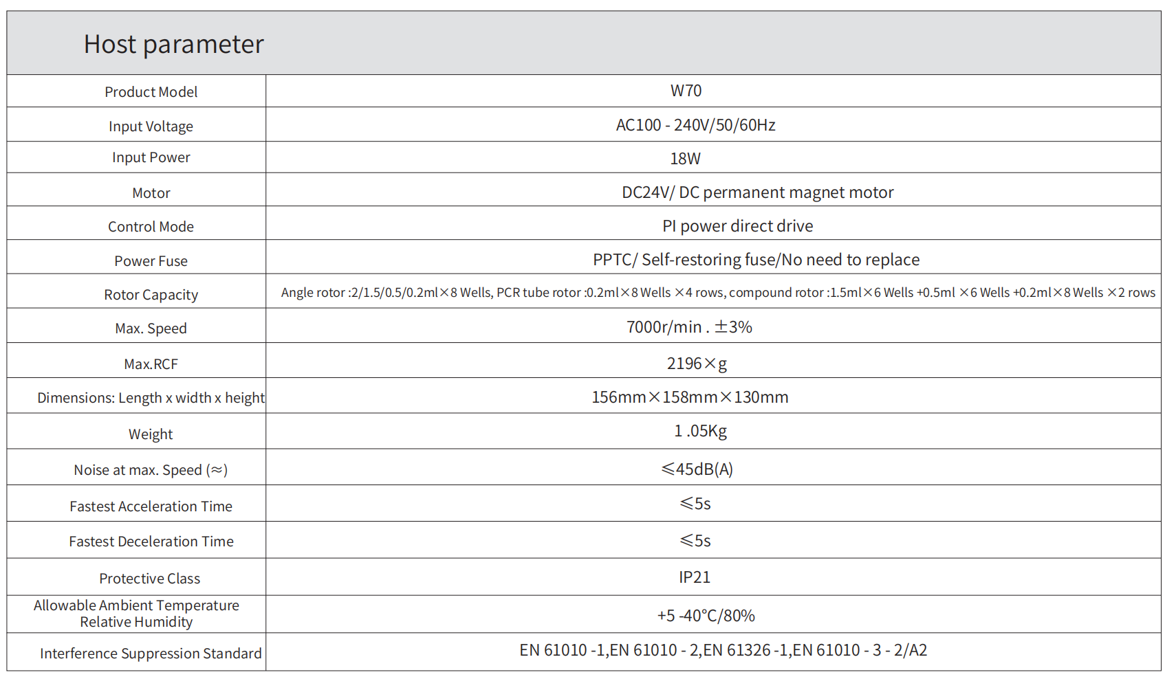 Using advanced and reliable PI high-frequency full-range wide power supply control scheme, which complies with AC100-240V/50/60Hz input power supply. It can more accurately control voltage, current, speed and relative centrifugal force to ensure that its constant speed will not change with voltage or load changes;