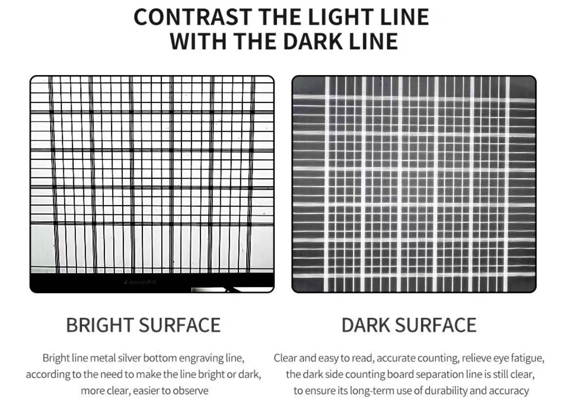 Clear and easy to read, accurate counting, ease eye fatigue, dark side counting board separator line is still clear even after repeated rinsing, ensure its long-term durability and accuracy.