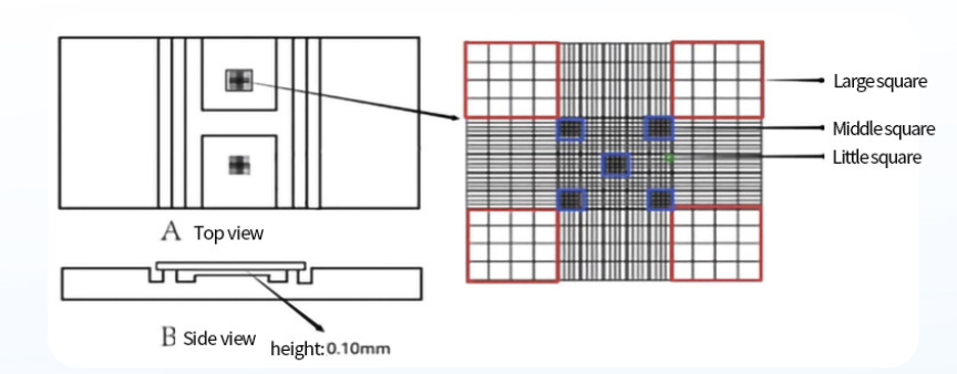 The hemocyte-counting plate is a special thick type of slide on which there is Four slots formthree platforms. The platform in the middle is wider, and in the middle is another one The shorttransverse groove is divided into two halves, each of which is carved with a small square meshEach grid is divided into nine large squares, and the central square is used for counting.This iscalled the counting area. There are two scales in the counting area: one is the count divided into 16The middle square (the largesquareis separated bythree lines), and each middlesquareis dividedinto two 25 small squares; The other is a count differentiated into 25 middle squares (middleThe squares are separated by double lines), and each square is divided into 16 smaller squaresLattice. But regardless ofthe construction of the counting area, they all have one thingin commonCharacteristics, that is, the counting area is composed of 400 small squares. The side length of thecounting area islmm, then the area ofthe counting area is lmm?, and the area of each small squareis 1/400mm?. The height of the counting area is 0.lmm after covering the cover slip, so The volumeof each counting area was 0.lmm,, and the volume of each small square was denoted 1/400mm.