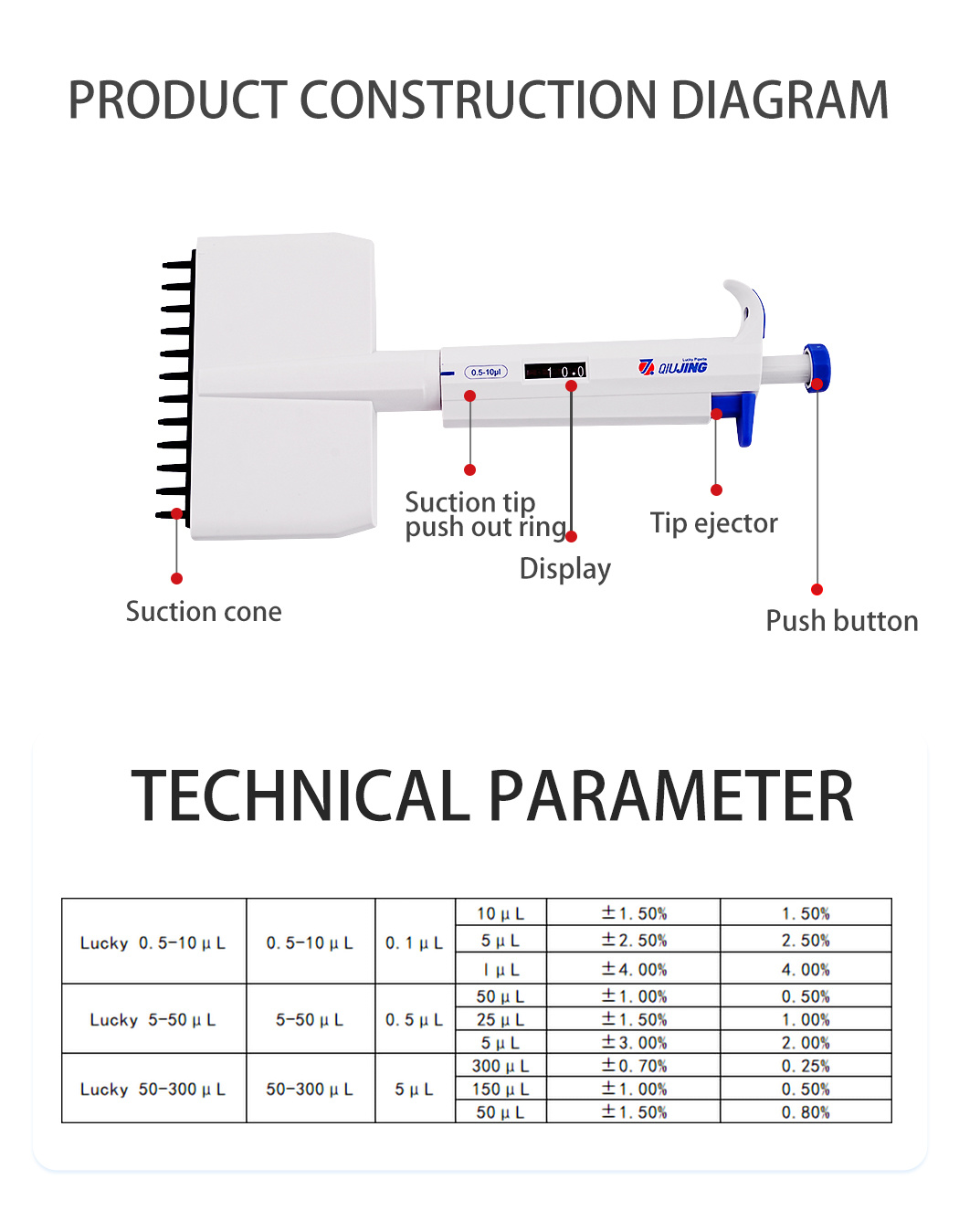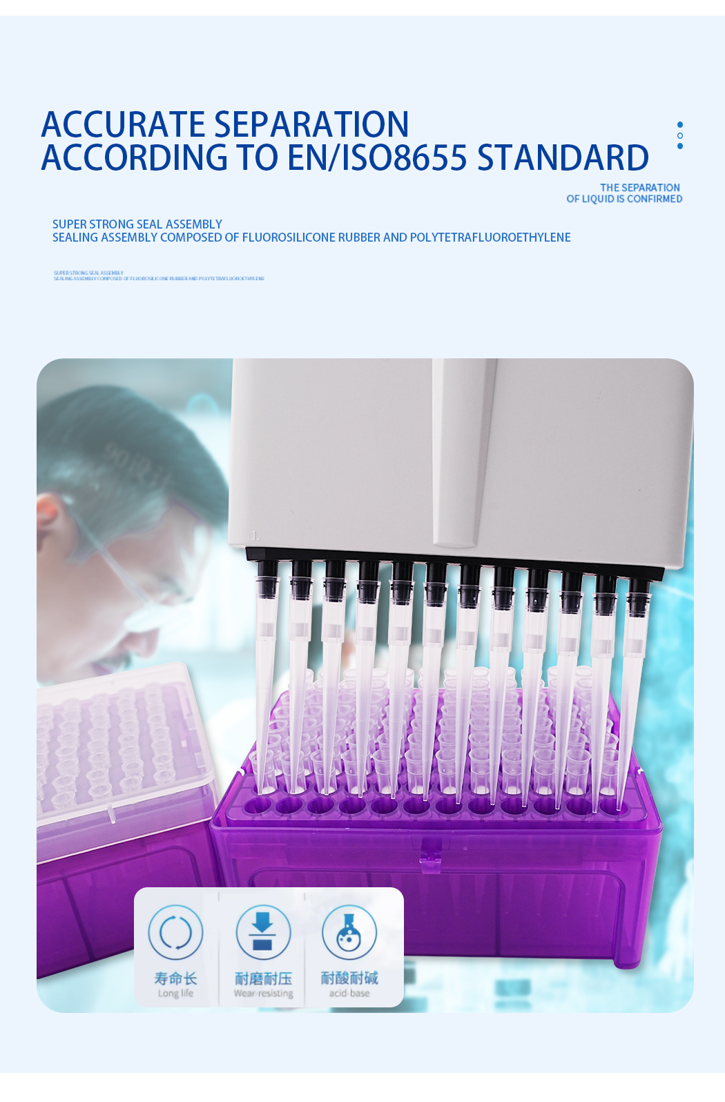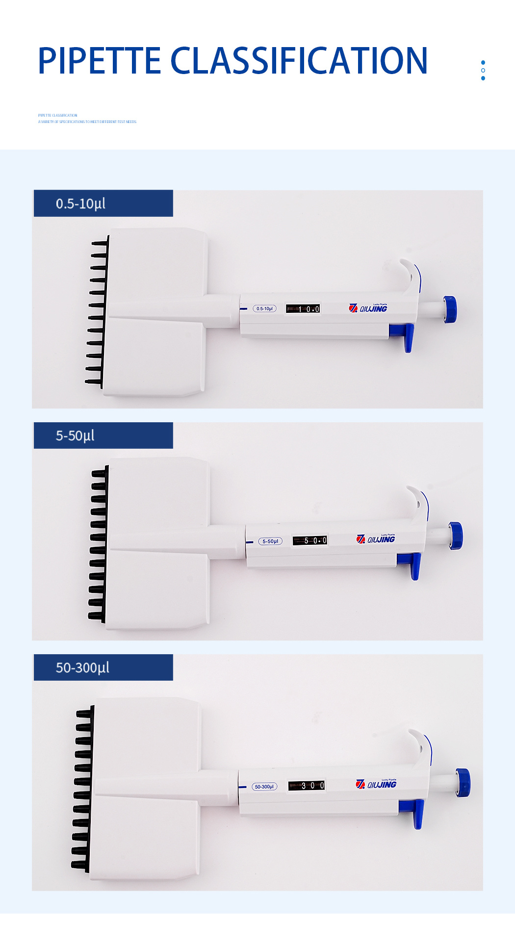 Endowed with reliable performance, these pipettes can better meet the diverse application needs of modern laboratories. They feature impact resistance, UV resistance, and chemical corrosion resistance, enabling them to perform stable liquid transfer work for a long time. Additionally, the pipette tip components are made of special materials; they are detachable, supporting high-temperature and high-pressure sterilization, and also allow independent range calibration.